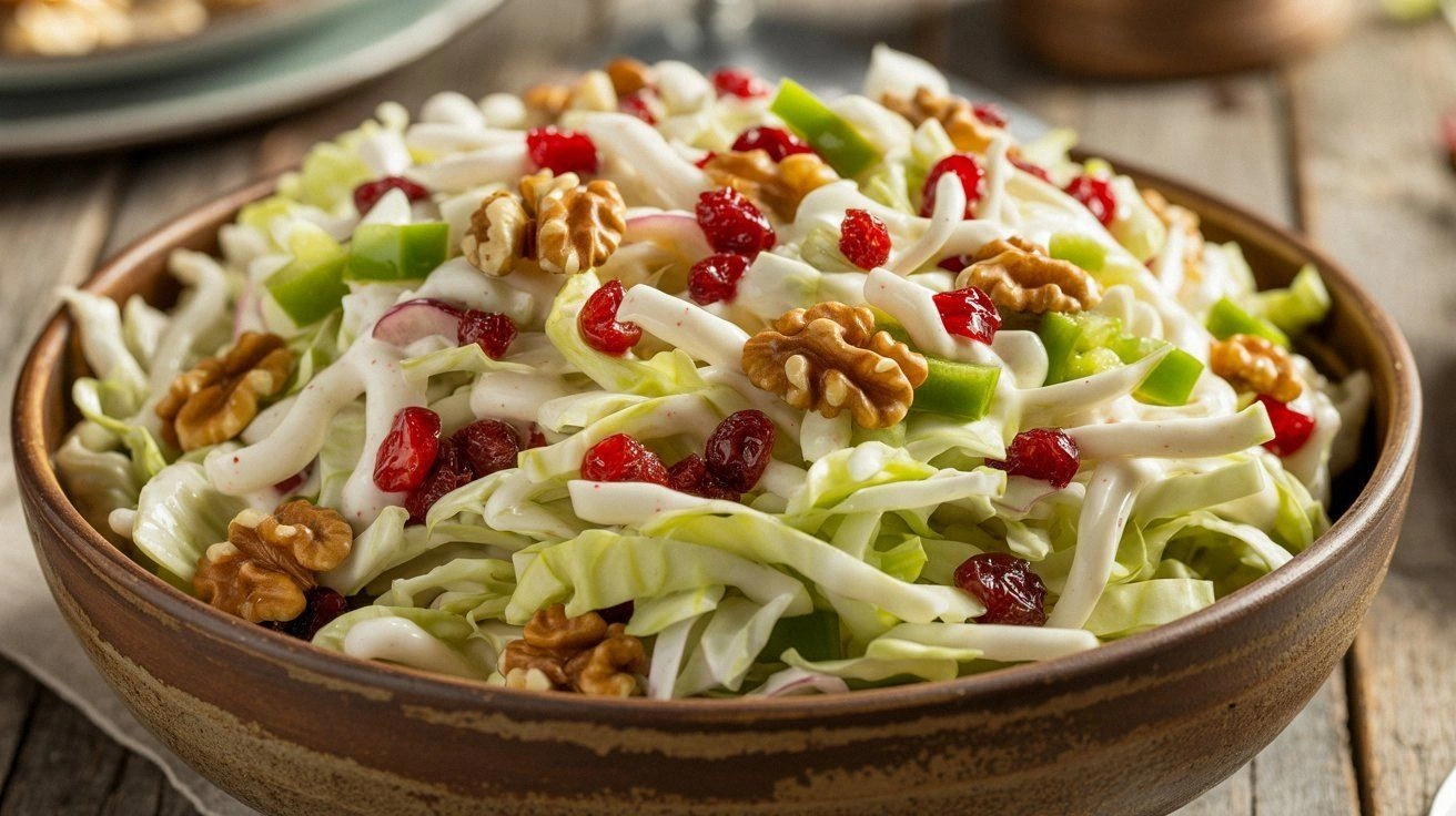 This isn’t just another coleslaw; it’s the kind of dish that turns an ordinary meal into a headline act. The combination of crunchy apple slices, juicy cranberries, and buttery walnuts creates layers of texture that play against each other like a well‑written poem. The honey‑mustard dressing coats every leaf and fruit with a silky sheen, making each bite feel like a silky, sweet whisper. The subtle heat from a touch of pepper gives the salad a gentle kick that keeps the palate awake. I’ve tasted countless salads that promise freshness but deliver blandness; this one delivers a punch that lingers long after the last forkful. It’s the kind of recipe that makes you question why you ever settled for plain coleslaw.
