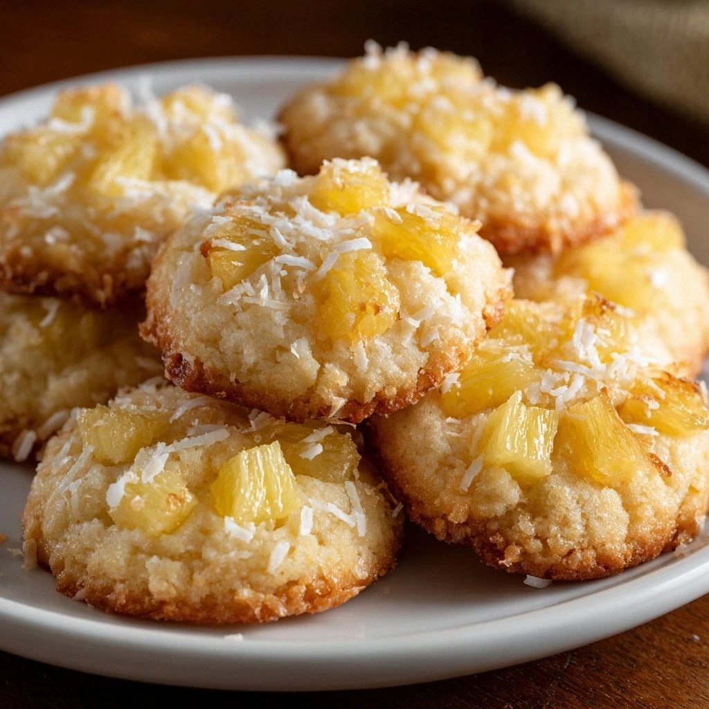 From the moment the butter met the sugar, a fragrant cloud of vanilla and caramel drifted through the kitchen, coaxing the senses into a sweet reverie. The sight of golden dough, the sound of a spoon gliding through the mixture, the feel of the dough’s silky texture under your fingers—all of it was a prelude to a cookie that would sing with a subtle, sun‑kissed melody. The aroma of toasted pineapple and toasted coconut mingled with the buttery scent, creating an olfactory promise of bliss. Each bite, when finally taken, would burst with moist pineapple, a hint of brown sugar caramel, and a gentle crunch from shredded coconut, leaving a lingering warmth that felt like a tropical vacation.